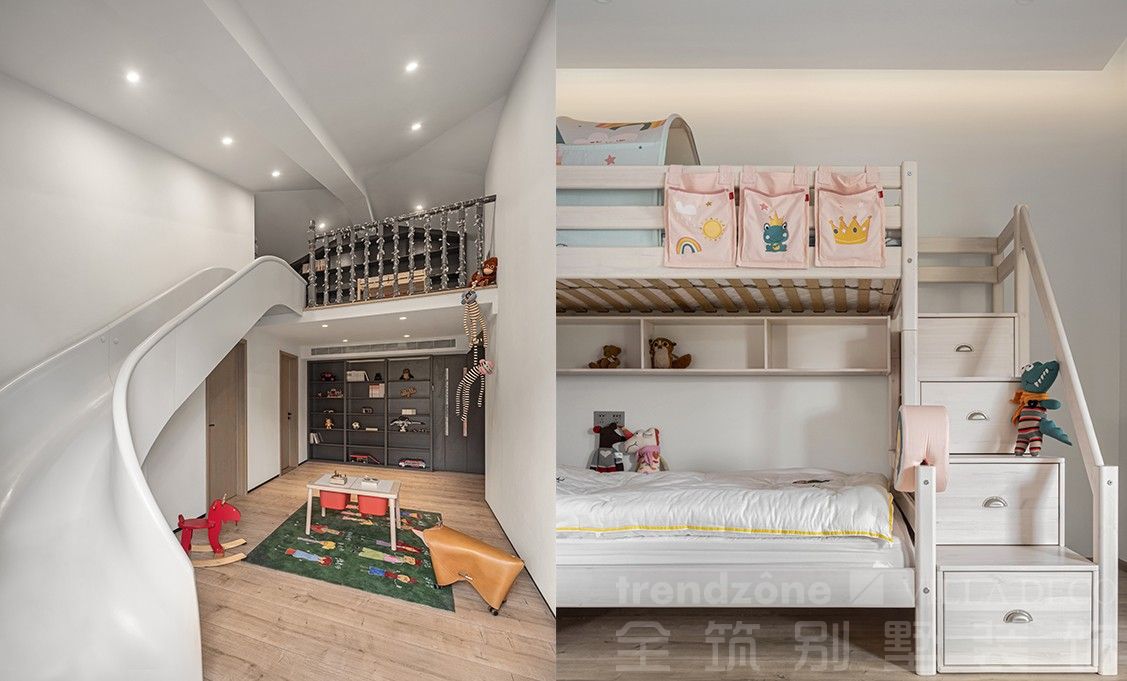 三層及閣樓是孩子們的世界,嚴謹自律的姐姐和活潑好(hǎo)動的弟弟,我們營造了閱讀區、手作區,以及從天而降的滑滑梯,快樂是一種(zhǒng)習慣 ,需要環境的引導。即使成(chéng)年,也願我們每個人心中都(dōu)能(néng)保留一份童真,是自我的救贖,亦是父母的幼年關懷。